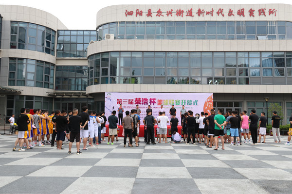 江蘇泗陽經(jīng)濟開發(fā)區(qū)組織人事局副局長衡瑋致開幕詞,并宣布第三屆“榮浩杯”籃球聯(lián)賽正式開始,他說,此次籃球聯(lián)賽是活躍地區(qū)文體生活、促進青年交流的一次盛會,也是響應黨中央“發(fā)展體育運動,增強人民體質(zhì)”方針政策,貫徹我縣打造“健康泗陽、體育強縣”目標的有力舉措。希望各代表隊發(fā)揚體育道德風尚,以最佳的競技狀態(tài),賽出風格、賽出水平、賽出友誼。